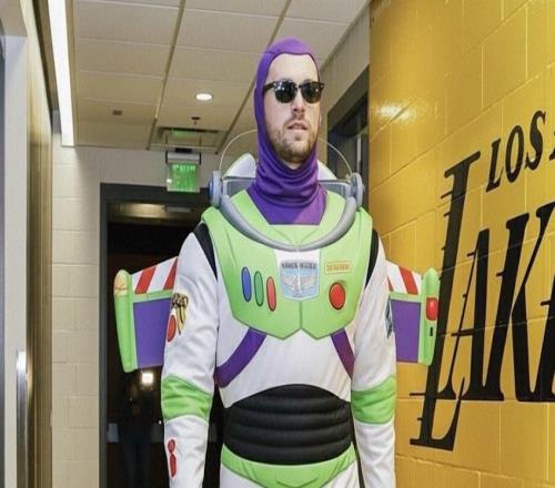 东契奇今日NBA杯迎来复出,赛前装扮成巴斯光年入场